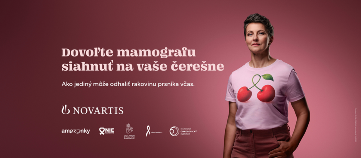 S veľkým rešpektom a vďakou podporujeme najnovšiu iniciatívu spoločnosti Novartis na zvýšenie účasti na mamografickom skríningu. V aktuálnej kampani využíva legendárnu pieseň Čerešne v novom, silnom a netradičnom kontexte – aby upozornila, že rozhodnutie ísť na mamografiu môže zachrániť život.